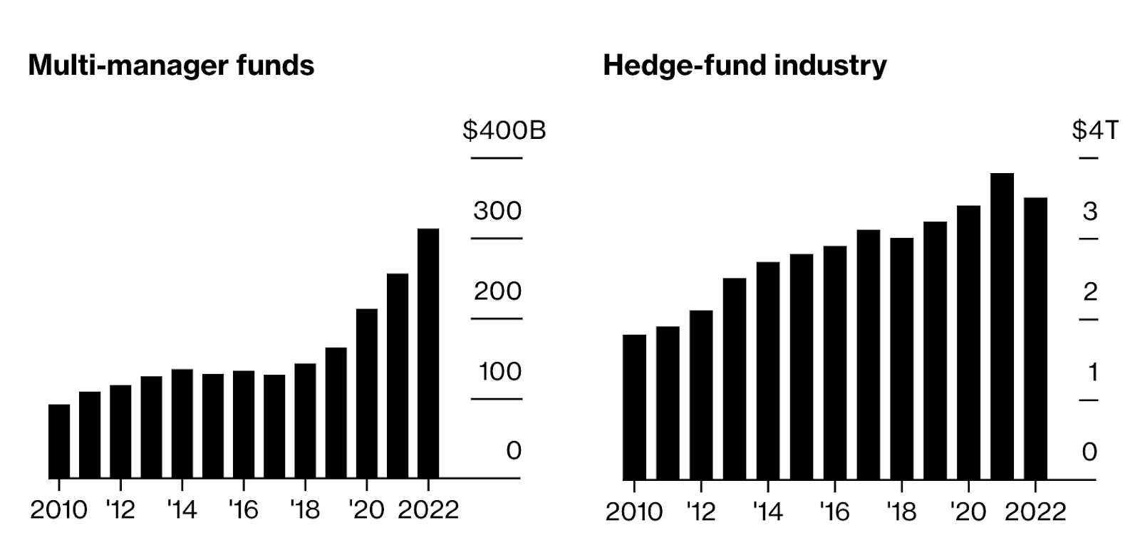 The multi-manager hedge fund platforms (more on them later) manage only about $500B in total (roughly 10% of hedge fund AUM), but have been responsible for perhaps 50% of the sector’s PnL in recent years. They also employ about one quarter of all hedge fund employees.