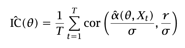 “Alphas” are a function from a parameter space Θ and a set of data Xt ∈ RNxM to RN. The data panel Xt contains M-dimensional vectors of features for each asset. This formulation encompasses an embarrassingly large array of choices, from simple linear combinations of columns to the latest and greatest learning architectures, with weights representable as a vector in Θ.