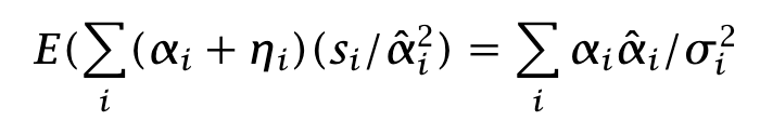 Nice paper. The equation 𝐸(∑(𝛼𝑖 + 𝜂𝑖)(𝑠𝑖/ ̂ 𝛼2𝑖 ) is a bit confusing(the one above equation 7), do you actually mean s / \sigma^2 instead of s/\alpha^2 ?
