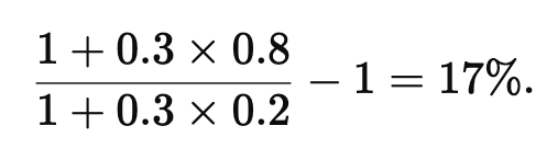 Do not increase it by 30%. As a first linear approximation (small δ), the percentage increase is (2q - 1)δ. Here is a table with optimal vol increases/decreases.
