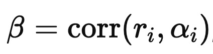 On a given period (days, minutes), you have standardized return predictions alpha(i) for stock i. Standardize those too, and assume they have cross-sectional mean zero. Write the relationship as