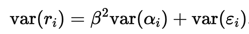 For the risk, assume (for this toy derivation) that the αiεi terms are cross-sectionally independent with mean zero. Then