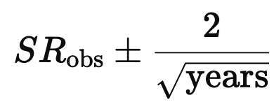Skill is easier to separate from luck when Sharpe is high. As a rough rule, a 95% two-sided confidence interval scales like